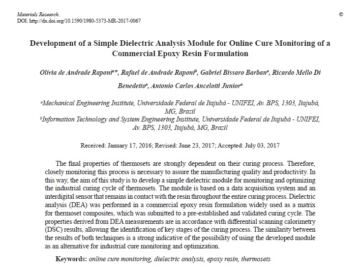 A pesquisadora e doutoranda Olívia de Andrade Raponi juntamente com a equipe do NTC publicou artigo científico na revista Materials Research. Parabéns pela conquista! RelacionadosDefesa de Mestrado realizada com Sucesso!16 de fevereiro de 2018Artigo Publicado!22 de janeiro de 2018Mais um artigo internacional publicado pelo NTC!4 de outubro de 2017O Coordenador do NTC apresenta trabalho em Congresso nos EUA11 de setembro de 2017Pesquisador do NTC desenvolve poliuretano a partir de matéria-prima inovadora e obtêm título de Mestre em Engenharia Mecânica23 de agosto de 2017Doutorando do NTC apresenta trabalho nos EUA14 de agosto de 2017